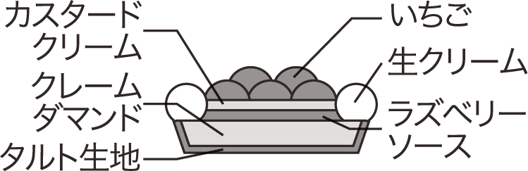 アーモンドの風味豊かなクリームを使用したタルト生地に、旬のいちごをたっぷりトッピング!ラズベリーソースの爽やかな酸味がアクセント!
