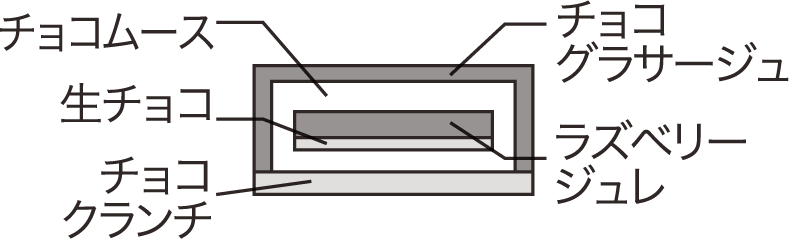 口どけなめらかなチョコムースと香ばしいプラリネを組み合わせた大人なチョコケーキ。アクセントに爽やかな木苺の酸味をプラス。芳醇な甘味がより引き立ちます。
