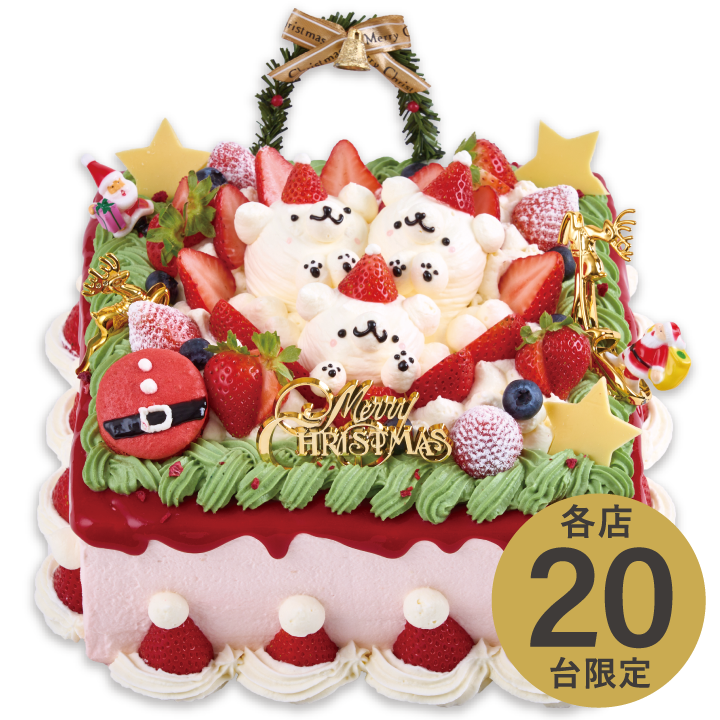 アルパジョンこだわりの生クリームとふわふわスポンジのスペシャルケーキ!サンタ仕様のくまちゃんといちごのクリスマス帽子が、クリスマスを華やかに彩ります!
