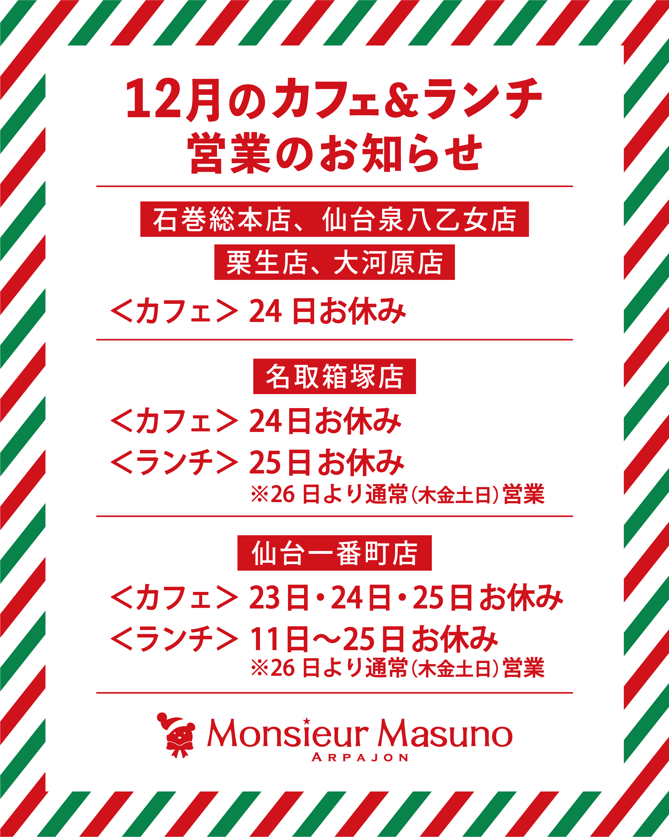 石巻総本店・仙台泉八乙女店・4号線岩沼店・栗生店・大河原店・名取箱塚店の